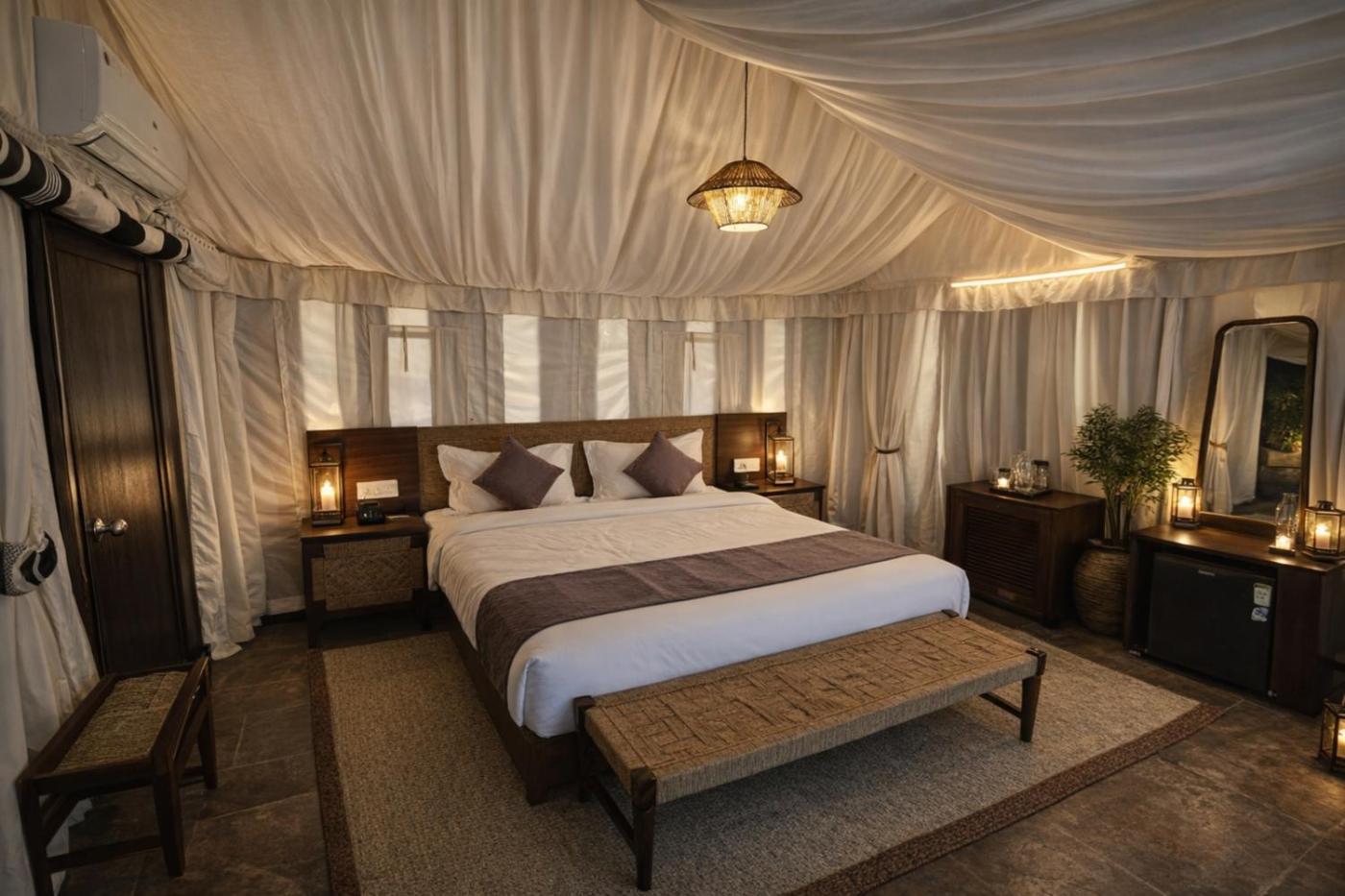 Tent. This tent has air conditioning, an electric kettle, a flat-screen TV and a balcony. The unit has 1 bed.